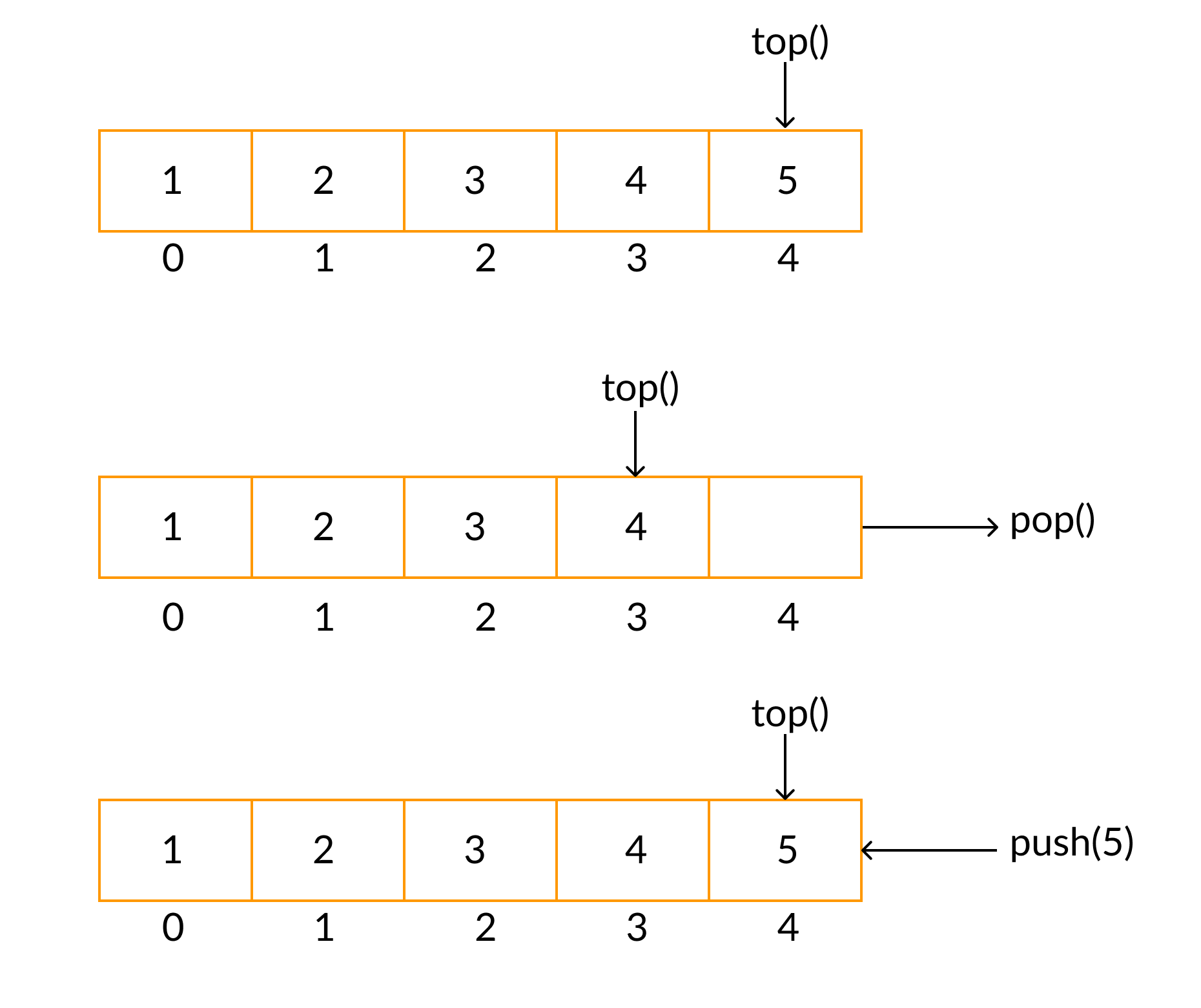 Last In First Out 이라는 개념을 가진 선형 자료구조입니다. 바닥이 막힌 상자를 생각하시면 됩니다. 여기에 요소를 넣는 것을 push 빼는 것을 pop 가장 위에 있는 데이터를 top이라고 합니다.