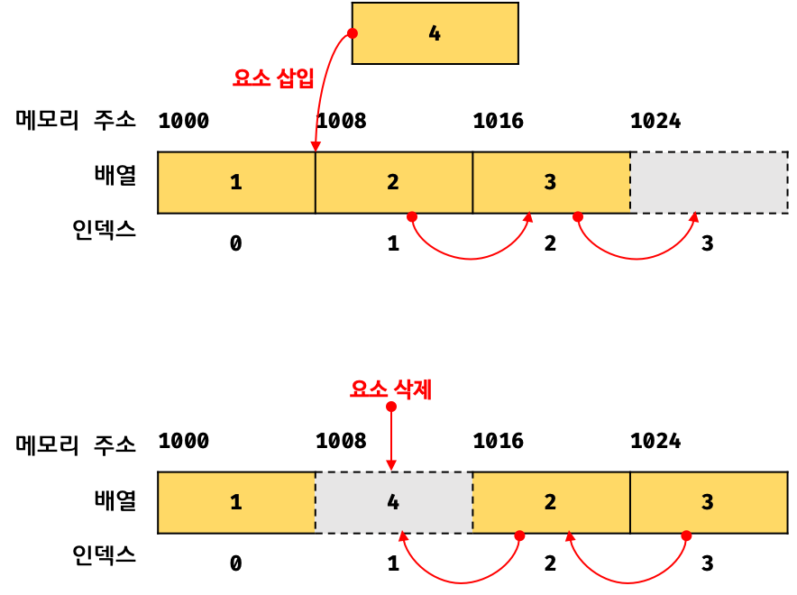 따라서 추가와 삭제가 반복되는 로직이라면 배열 사용을 권장하지 않습니다.