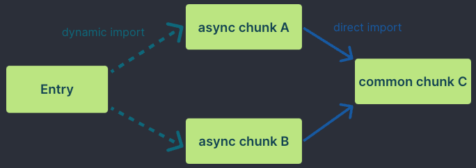 빌드 시 때때로 Rollup은 공통 청크 파일을 생성합니다. 보통 두 개 이상의 모듈에서 공유되는 청크가 이러한데, 이를 Dynamic Import를 이용해 불러오는 경우 다음과 같은 상황이 발생됩니다.