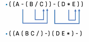 - 각 계산뭉치를 묶고 있는 괄호 안에서 연산자를 계산뭉치의 가장 오른쪽으로 이동시킴