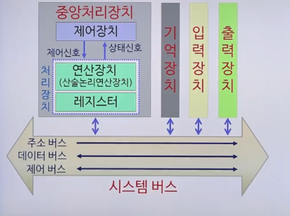 - 입출력장치: 사용자와 컴퓨터 시스템을 연결해주는 장치