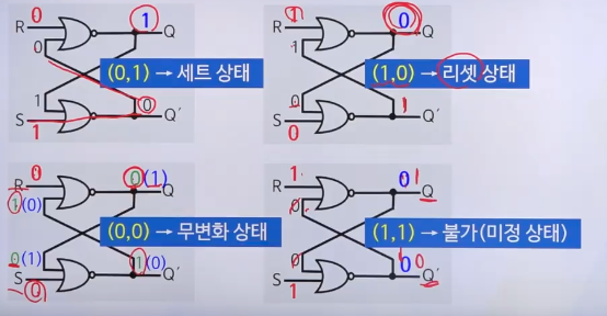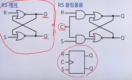 - 입력신호에 의해서 상태를 바꾸도록 지시할 때까지는 현재의 이진 상태를 유지하는 논리소자