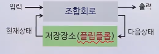 - 연산의 각 단계마다 회로의 특정 상태가 저장/참조되는 회로 → 출력값이 입력값과 기억소자에 저장된 현재 상태에 따라 결정