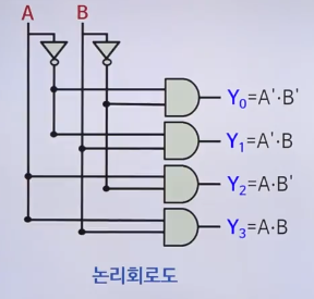 - n비트의 이진 코드를 최대 2^n개의 서로 다른 정보로 변환 → 출력 중에서 오직 한 개만 1이 되고, 나머지는 모두 0이 됨