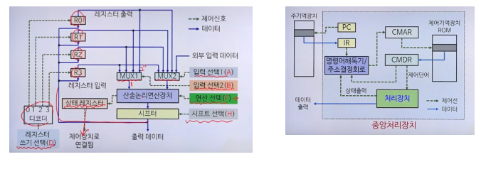 - 제어장치(control memory): 마이크로연산의 집합을 저장하고 있는 기억장치(ROM으로 구현)