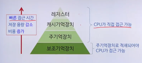- 캐시기억장치: CPU와 주기억장치 간의 속도 차이를 줄여주는 역할