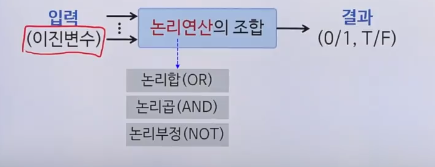 - 논리적 문제를 해결하기 위한 수학적 방법 → 논리 대수, 스위칭 대수