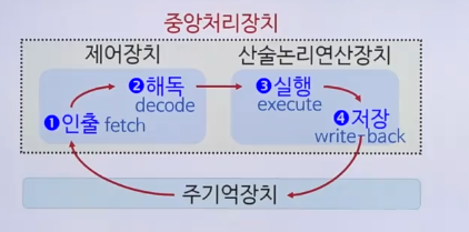 - 처리장치를 구동해서 특정 연산을 수행한 후 처리장치 내의 레지스터 값을 갱신하고 연산 결과를 출력