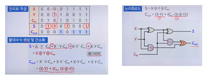 Full Adder: 아랫자리에서 올라온 올림수(carry)를 고려한 가산기